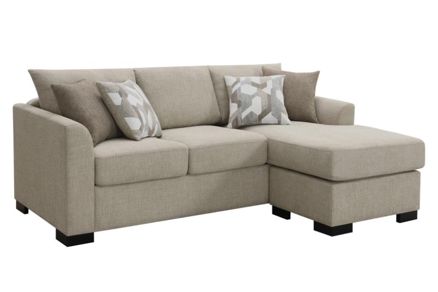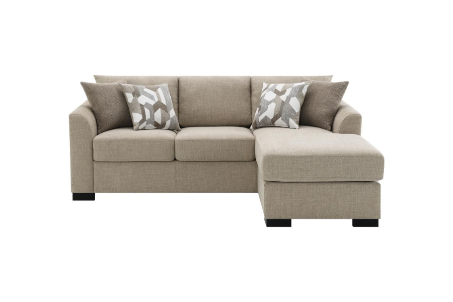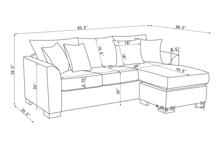 | * Modern sleeper sectional includes a chaise for optimal versatility and relaxation * Four accent pillows with geometric patterns are included to complement neutral, modern upholstery * Fully encased solid and engineered wood frame provides lasting durability and reliability * Seat cushions are removable and back cushions are reversible for added versatility and comfort * Seats feature pocket coils, creating a spring base for durability and comfort in your home |