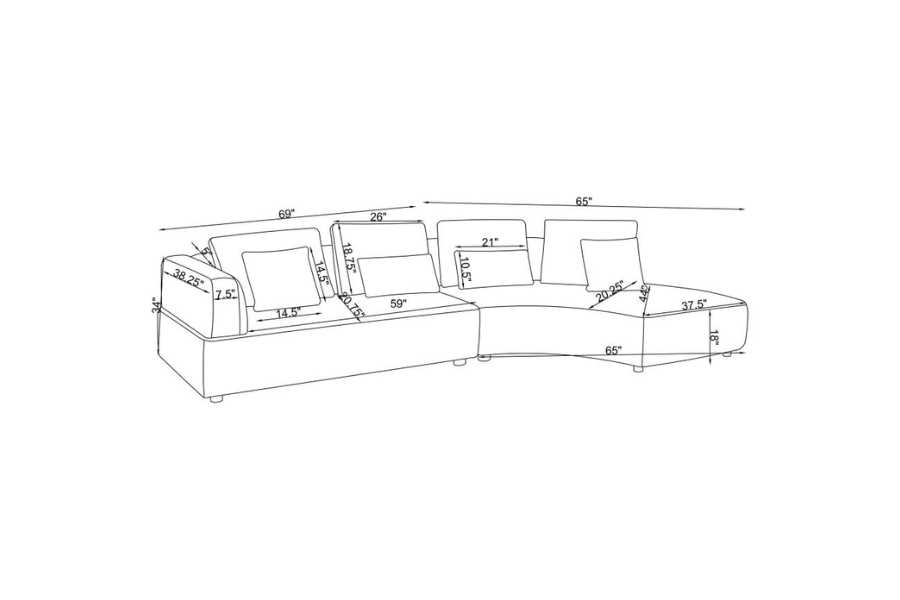 | Complete your spacious modern living room with this beautifully designed modular sectional, featuring soft, textural fabric. Feather blend-wrapped box cushion seating with reversible cushions and topstitched details, paired with a thin track arm design, create a sleek, modern aesthetic to elevate your family room and beyond. Matching accent pillows and plush back cushions add extra comfort, nestled against the sloped track armrests. This sectional is perfect for complementing your existing decor, welcoming neutral tones, or providing a sophisticated backdrop to vibrant colors. | |