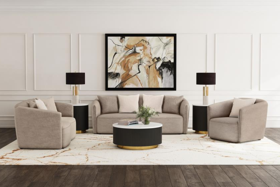* Neutral latte upholstery adds understated allure to a modern loveseat with plush foam cushions * Curved shelter back and rounded arms are complemented with upholstery with a slight wavy pattern * Fully encased solid and engineered wood frame provides lasting durability and reliability * Features attached cushions with accent pillows included for added comfort and flexibility * Seats feature pocket coils and sinuous springs, creating durability and comfort in your home |