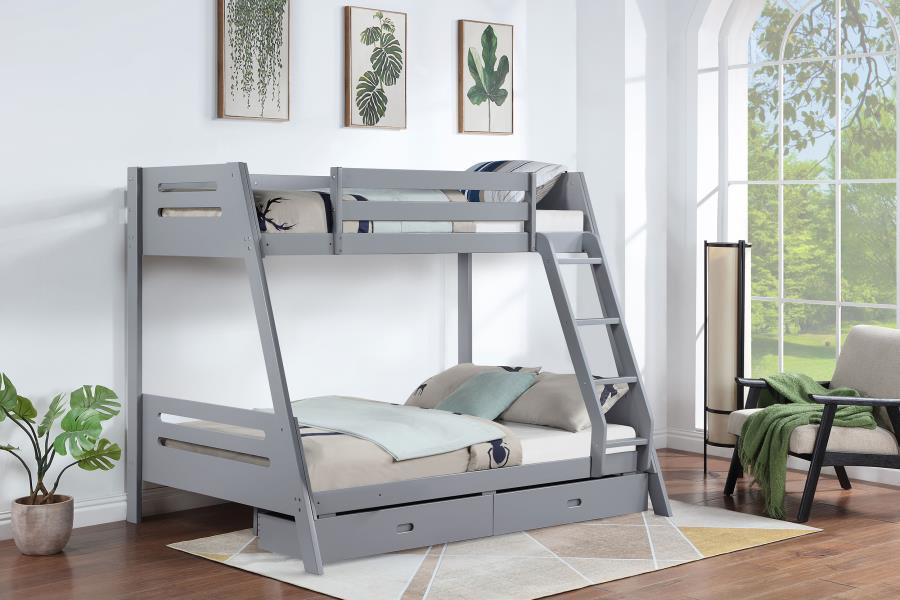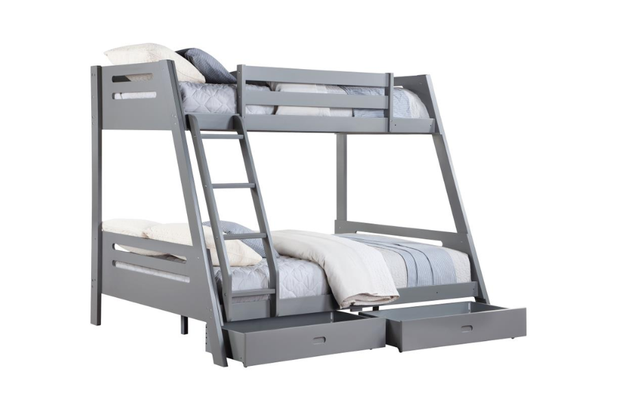 Trisha 2-drawer Wood Twin Over Full Bunk Bed Grey 460562TF