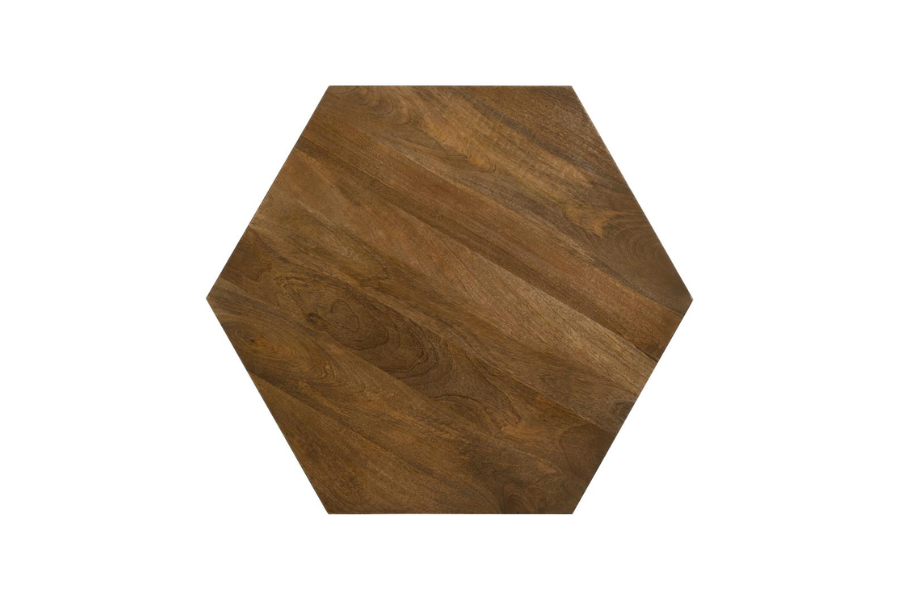* Modern influence with a rustic vibe * Artistic in shape; authentic in color * Triangular facets frame the hexagonal shaped top * Constructed with mango wood |