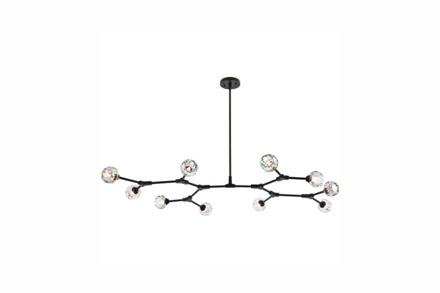Crafted from iron metal and crystal, it features a round ceiling canopy, a hanging rod of 46 inch long, and arms extended with a solid K9 crystal ball from rods at all angles for a modern and linear look. Each 20W G9 bulb ( not included) is diffused by a faceted clear crystal ball giving the fixture a touch of industrial and glam inspiration. This work of art will add an artful focal point to your entryway, dining room, kitchen, or office. Evoking a sophisticated and timeless aesthetic to any space and will be an instant conversation started with its finely faceted crystal sphere which is polished by hand to reflect and refract light. Available in three different finishes in gold, chrome, and black.
