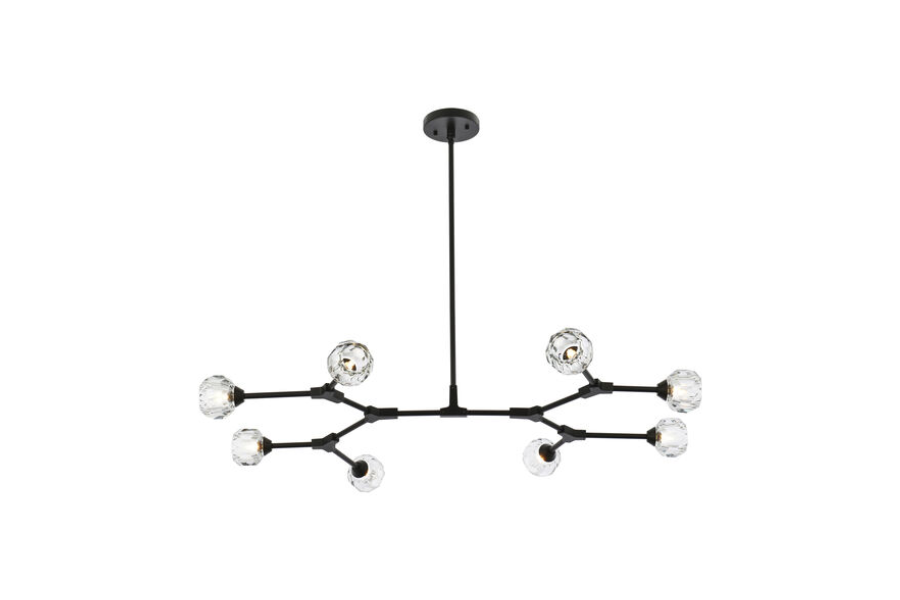 Crafted from iron metal and crystal, it features a round ceiling canopy, a hanging rod of 46 inch long, and arms extended with a solid K9 crystal ball from rods at all angles for a modern and linear look. Each 20W G9 bulb ( not included) is diffused by a faceted clear crystal ball giving the fixture a touch of industrial and glam inspiration. This work of art will add an artful focal point to your entryway, dining room, kitchen, or office. Evoking a sophisticated and timeless aesthetic to any space and will be an instant conversation started with its finely faceted crystal sphere which is polished by hand to reflect and refract light. Available in three different finishes in gold, chrome, and black.